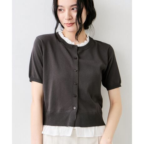 コンパクトシルエットのフリル襟が可愛いカーデトップス。