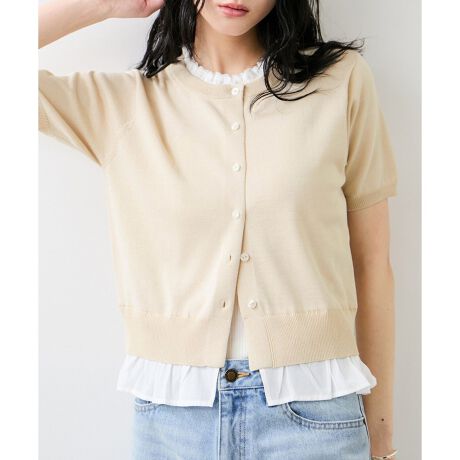 コンパクトシルエットのフリル襟が可愛いカーデトップス。
