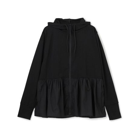 ■デザイン分量感のあるペプラムデザインが身体のラインを拾わず、ヒップラインをしっかりカバーしてくれるパーカー。フード部分は本体と同じUVカット機能付き素材にアップデートし、フード口の紐で絞ることで首元や顔周りの日焼け対策も万全です。長めの袖は袖口にサムホールがあるため、手の甲までしっかり紫外線対策できる仕様。サムホールは指通りをしやすく改良しました。プールやレジャーではもちろん、日除けや冷房対策にもご利用いただける便利アイテムです。右身頃のポケットはファスナー付きで、アクティブに動いても中身が落ちる心配がなく安心。左身頃のポケットはオープンポケットで、シームレスに取り出せる使いやすい仕様です。
