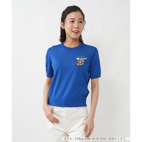 レーヨンにナイロンをブレンドした、滑らかな肌触りと上品な光沢感が魅力のクルーネックニットです。左胸に施されたバッグから愛らしい黒猫が顔を出すインターシャ編みと繊細な刺繍が、大人の遊び心をくすぐるアクセントを添えています。コンパクトなシルエットながら身体のラインを優しく包み込み、日常の着こなしに知的な華やかさをプラスしてくれる一枚。ジャケットのインナーとしても映え、季節の変わり目からロングシーズン活躍する頼れるトップスです。