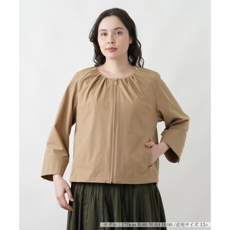 初夏の羽織りものとして重宝する、ノーカラーブルゾンです。すっきりとしたノーカラーの丸首デザインが、カジュアルな中にも女性らしい柔らかさを演出。顔周りを優しく見せ、上品な印象を与えます。軽やかな七分袖は、手首をのぞかせることで華奢な雰囲気を醸し出し、涼しげな抜け感をプラス。シンプルな無地なので、柄物のワンピースやブラウスとも相性良くまとまります。お出かけ先での急な天候の変化にも対応しやすい機能を備え、ご自宅で手軽にお手入れできるのも嬉しいポイント。デイリーユースから旅行まで、幅広いシーンで活躍する、ワードローブにあると心強い一着です。