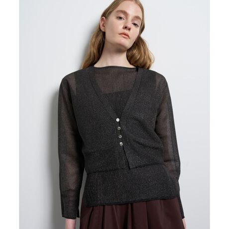 キラキラした光沢が目を惹く、軽やかで涼し気なシアーニット。
