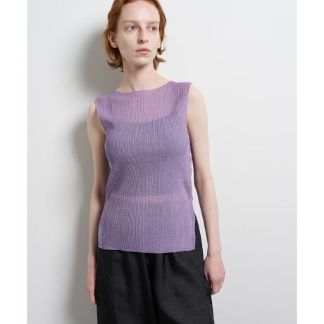 キラキラした光沢が目を惹く、軽やかで涼し気なシアーニット。