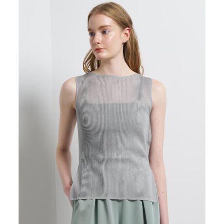 キラキラした光沢が目を惹く、軽やかで涼し気なシアーニット。