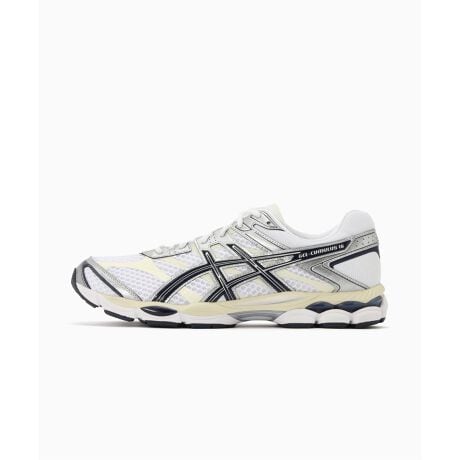 GEL-CUMULUS 16は、2014年に発売された長距離走行時のソフトなクッション性が評価されてきたランニングシューズベースのモデルです。アッパーには光沢のある人工皮革のオーバーレイ、縫い目のないパネル、オープンメッシュレイヤーを組み合わせている。この素材の組み合わせは、2010年代の先進的ランニングシューズに見られる技術的な美しさを生み出しています。ソフトなクッション性はそのままに。前足部とかかと部の2つのGELテクノロジー、FLUIDRIDE(フルイドライド)テクノロジー、FLYTEFOAM(フライトフォーム)テクノロジーを搭載し、足元の快適さをサポートします。