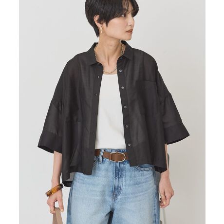 着丈はショート丈デザインの為、ハイウエストパンツやロングスカートとの相性◎透け感[ややあり]