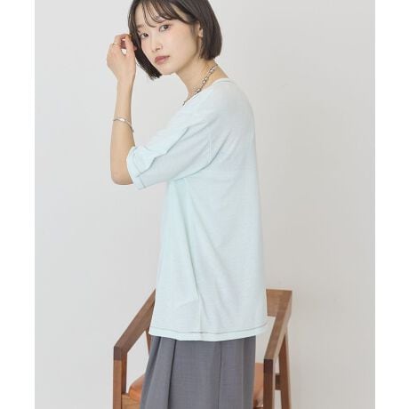 柔らかな肌ざわりの素材で仕立てたシアーTシャツ。程よい透け感でデイリーに着回しやすく、身頃と微配色のステッチがさりげないアクセントに。身幅と着丈にゆとりをもたせたリラックスシルエットで動きやすくこなれた印象に仕上がります。薄手でボトムスにINしやすく、キャミワンピやサロペットのインナーにも最適。肘が隠れる袖丈で二の腕カバーも叶えます。