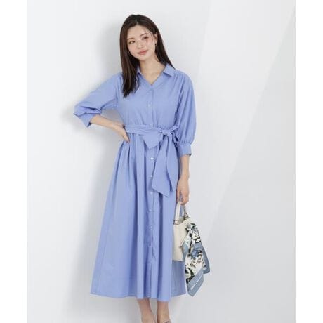 鮮やかなカラーが映えるキレイめシャツワンピース。大きめウエストリボンがポイントで、女性らしさを演出します。ボリュームのあるシルエットと、袖口の裏側はゴムシャーリングで動きやすくなっています。デイリーにきちんと感を出せる便利な一枚です。