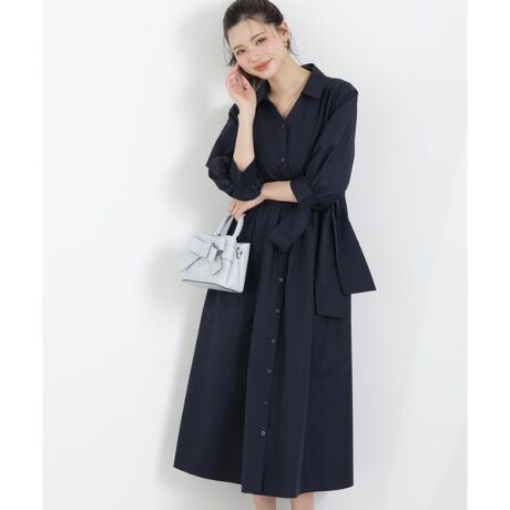 鮮やかなカラーが映えるキレイめシャツワンピース。大きめウエストリボンがポイントで、女性らしさを演出します。ボリュームのあるシルエットと、袖口の裏側はゴムシャーリングで動きやすくなっています。デイリーにきちんと感を出せる便利な一枚です。