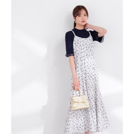 オリジナルの花柄をあしらったフェミニンな雰囲気のキャミワンピース。後ろリボンで肩ヒモの長さを調節できるため、インナーに合わせて着こなしの幅が広がります。大人っぽい花柄でコーディネートに取り入れやすく、ロングシーズン着回せます。