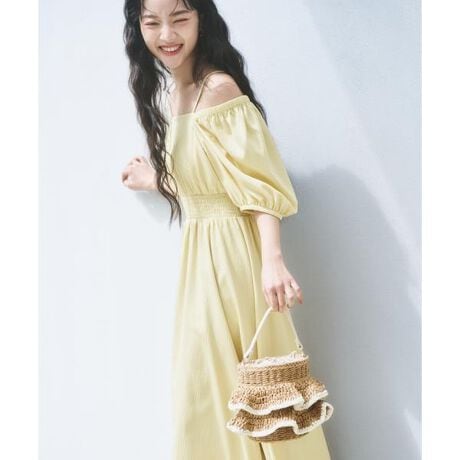 オリジナルパターンで仕上げた、ふんわりとボリュームのあるパフスリーブワンピース。2way仕様でオフショルダーとしても着用いただけます。肩紐は長さ調節可能。ウエストは程よくフィットし、スタイルアップを叶えます。表面感のある素材を使用しており、程よくカジュアルに楽しめます。