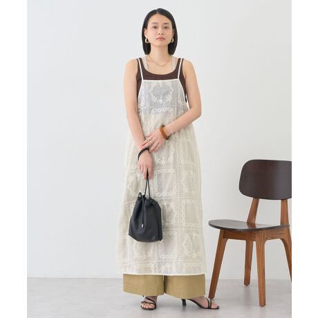 刺繍シアーが映える、軽やかレイヤードスタイル華やかな刺繍と透け感のあるシアー素材が魅力のキャミワンピースです。やわらかな雰囲気をまといながら、レースのディテールが上品さを引き立てます。ペチコートがセットになっているため、透け感を気にせず安心して着用できるのもポイントです。肩紐はアジャスター仕様で調整しやすく、身長やスタイリングに合わせてバランスよく着こなせます。インナーを変えることで印象が変わり、カジュアルにもきれいめにも対応できるため、コーディネートの幅が広がる便利なアイテムです。透け感[なし]