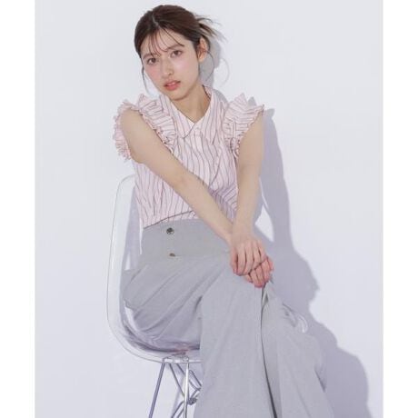 人気アイテムが綿タッチで肌離れの良い素材になって再登場!フリルスリーブが華やかなブラウス。タックとギャザーを入れたフリルスリーブで二の腕をカバーします。左胸にはロゴ刺しゅう入り。ウエストにはダーツが入っているため、ボトムスインした時にすっきり着こなせるシルエットです。パンツもスカートも合わせやすくておすすめ。定番ホワイトに加えて、新色カラーストライプ柄を揃えています。※撮影時照明の関係により、色味が違って見える場合がございます。またパソコン・スマートフォンなどの環境により、若干製品と画像のカラーが異なる場合もございます。予めご了承ください。商品の色味は、商品単品画像をご参照下さい。※商品画像はサンプルのため、色味やサイズ等の仕様に変更がある場合がございますので、予めご了承ください。