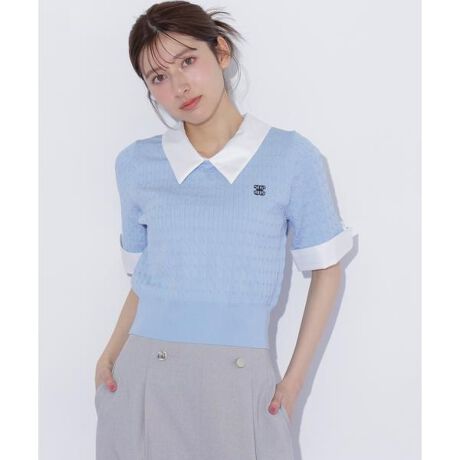 シャツ襟レイヤードニット