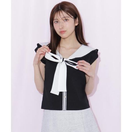 セーラーカラーにリボンをあしらったガーリーニット。顔まわりを華やかに見せてくれるデザインです。程よくコンパクトなシルエットでスタイル良く演出。一枚で着映える主役トップスです。※撮影時照明の関係により、色味が違って見える場合がございます。またパソコン・スマートフォンなどの環境により、若干製品と画像のカラーが異なる場合もございます。予めご了承ください。商品の色味は、商品単品画像をご参照下さい。※商品画像はサンプルのため、色味やサイズ等の仕様に変更がある場合がございますので、予めご了承ください。