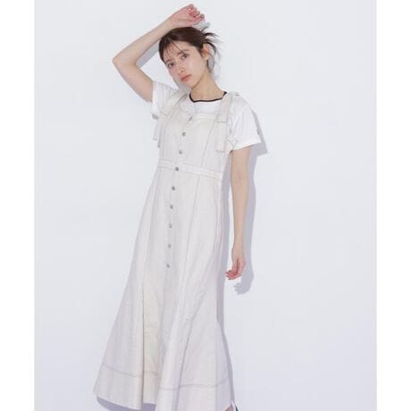 肩リボンが目を引くデニムジャンスカ。カジュアルなデニムに程よい甘さをプラスしたデザインです。インナー次第でロングシーズン着回しが可能で、大人ガーリーなスタイルにぴったりの一枚です。※撮影時照明の関係により、色味が違って見える場合がございます。またパソコン・スマートフォンなどの環境により、若干製品と画像のカラーが異なる場合もございます。予めご了承ください。商品の色味は、商品単品画像をご参照下さい。※商品画像はサンプルのため、色味やサイズ等の仕様に変更がある場合がございますので、予めご了承ください。
