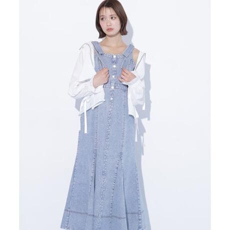 肩リボンが目を引くデニムジャンスカ。カジュアルなデニムに程よい甘さをプラスしたデザインです。インナー次第でロングシーズン着回しが可能で、大人ガーリーなスタイルにぴったりの一枚です。※撮影時照明の関係により、色味が違って見える場合がございます。またパソコン・スマートフォンなどの環境により、若干製品と画像のカラーが異なる場合もございます。予めご了承ください。商品の色味は、商品単品画像をご参照下さい。※商品画像はサンプルのため、色味やサイズ等の仕様に変更がある場合がございますので、予めご了承ください。