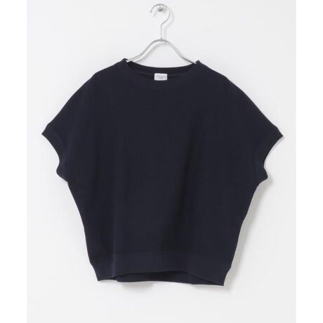 ニットのような表面感を持つフライス生地を使用したプルオーバーは、ゆったりとしたシルエットはそのままに、袖丈を短くすることですっきりとした印象に。
