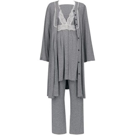 【マタニティアンサンブルパジャマ(産前・産後兼用)】インナートップス袖丈:半袖・羽織袖丈:長袖(10分袖)・ボトム脇丈:長ズボン(10分丈)・授乳あき付きワコール プレミアム●上下、羽織ともコーディネイトできる3点セットのアンサンブルパジャマ●産前から産後までのマタニティの体型変化を考慮した、リラックスできるパターン設計●ボトムはマタニティ用の設計でおなかをすっぽり包みこみ、ウエストも高伸度ゴムの使用でラクなはきごこち(ウエストゴム取り替え口あり)●授乳時に胸もとが見えないよう前布を付け、左肩と左脇でホックを留める仕様なので全開でき、着脱も便利●前あき・授乳あき付きで入院準備品としてもおすすめ●本体に、とろみのあるやわらかい触感がここちよいレーヨンベア天竺素材を使用●ボトムにポケットあり※お洗濯は、必ず「取扱い表示」にしたがってください。