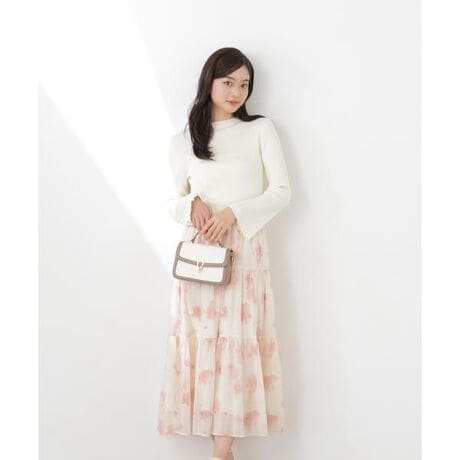 華やかな花柄が目を引くニットドッキングワンピース。タイトなリブニットに、ふんわりとした花柄ティアードスカートをバランス良く組み合わせて、フィット&フレアシルエットを演出。ウエストはゴム仕様で動きやすく、アウターの中でも映える、楽ちん華やかな一枚です。