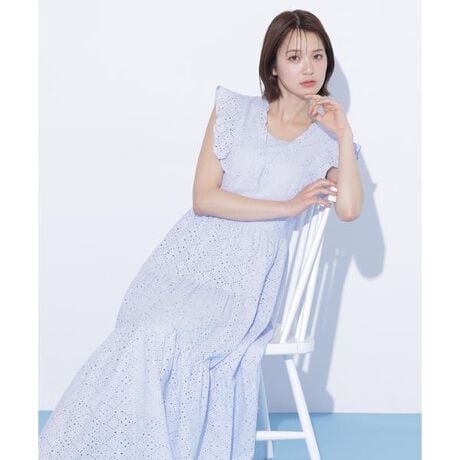 カットワークティアードワンピース