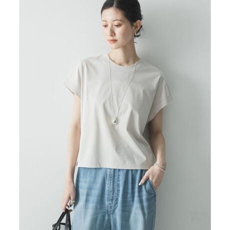 上品な光沢感でカジュアルさを抑え、快適な機能性も備えたスーピマコットンフレンチスリーブカットソー。