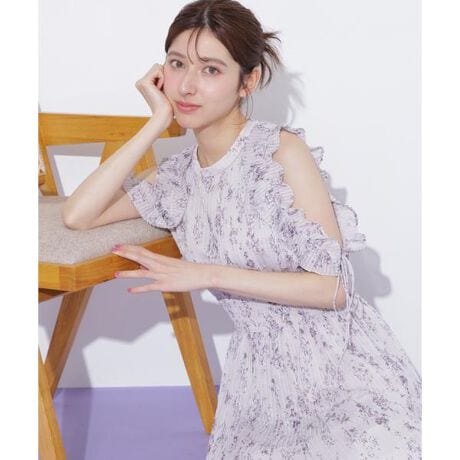 発色の良い爽やかなカラーが映えるフラワーワンピース。肩を華奢に見せるフリル位置や、二の腕をカバーするプリーツフリルとリボンで、華やかさと着やすさを両立したデザイン。被り仕様で着脱も簡単にでき、ウエストのシャーリングはフィット感がありながら締め付けすぎない着心地です。シアー素材にプリーツをあしらった軽やかで上品な一枚です。※撮影時照明の関係により、色味が違って見える場合がございます。またパソコン・スマートフォンなどの環境により、若干製品と画像のカラーが異なる場合もございます。予めご了承ください。商品の色味は、商品単品画像をご参照下さい。※商品画像はサンプルのため、色味やサイズ等の仕様に変更がある場合がございますので、予めご了承ください。