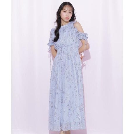 発色の良い爽やかなカラーが映えるフラワーワンピース。肩を華奢に見せるフリル位置や、二の腕をカバーするプリーツフリルとリボンで、華やかさと着やすさを両立したデザイン。被り仕様で着脱も簡単にでき、ウエストのシャーリングはフィット感がありながら締め付けすぎない着心地です。シアー素材にプリーツをあしらった軽やかで上品な一枚です。※撮影時照明の関係により、色味が違って見える場合がございます。またパソコン・スマートフォンなどの環境により、若干製品と画像のカラーが異なる場合もございます。予めご了承ください。商品の色味は、商品単品画像をご参照下さい。※商品画像はサンプルのため、色味やサイズ等の仕様に変更がある場合がございますので、予めご了承ください。