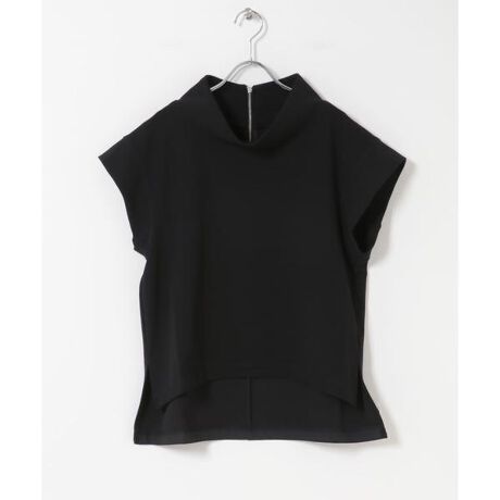デイリーユースしやすいシンプルなハイネックカットソー。特徴的な衿は程よい高さとゆったりとしたデザインがモードな印象をあたえ、夏でも首元が涼し気なシルエットに。凹凸感のあるきれいめ素材を使用することでさらっと着心地も良く、きちんと感もプラスしてくれる優秀カットソーです。後ろ丈はやや長めなのでパンツ合わせでヒップにかかりお尻まわりも自然にカバー。バックデザインのフェイクレザーテープは洗濯時に取り外し可能なのも嬉しいポイント。