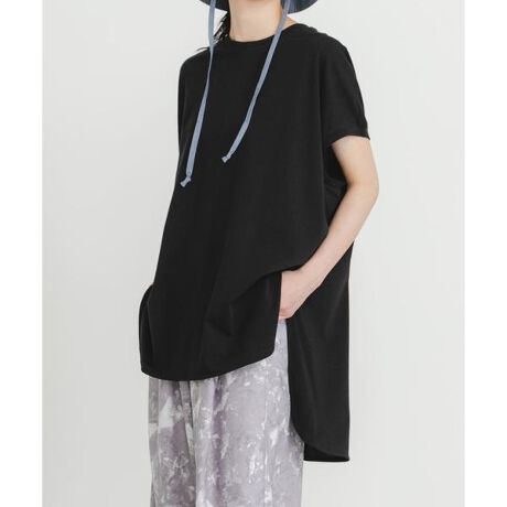 シルケット加工を施し、さらっとした肌触りと、光沢が特徴の綿100%の素材を使用。前後差寸のあるラウンドヘムが特徴。後ろはヒップラインが隠れるくらい長めなので、体型カバー効果が期待できるのも嬉しいポイントです。前だけインしてもそのままで着用してもすっきり見えるように計算されたデザインになっており、ボトムによって着こなしを選べます。身体のラインを拾わない程よいサイズ感はシンプルでありながら存在感があり、スタイリングの主役として幅広く活躍します。昨年も人気のデザインで今年はトレンドでもある渋めのパープルを展開しております。