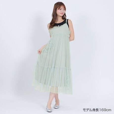 チュールギャザーで表現したデイジーが目を引くキャミ・ワンピース。