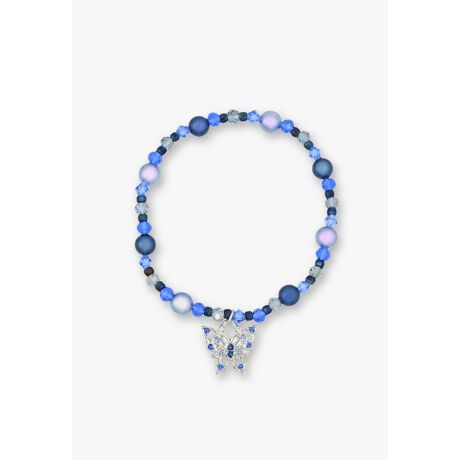 ANNA SUIのブランドアイコンである蝶モチーフを、鮮やかなブルーで表現した爽やかな印象のブレスレット。 海中の煌めきを思わせるカットガラスと透け感のある蝶が繊細で美しい輝きを放ち、シルバーカラーメッキの涼やかなコンビネーションが、洗練された雰囲気を引き立てます。 泡のように軽やかに煌めくパーツがお手元を華やかに演出します。