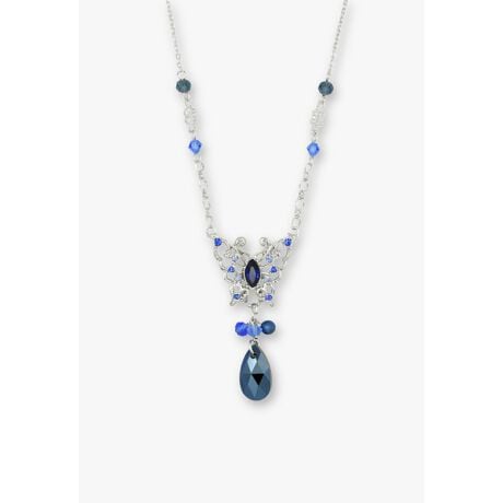 ANNA SUIのブランドアイコンである蝶モチーフを、鮮やかなブルーで仕上げた爽やかな印象のネックレス。 海中の煌めきを思わせるカットガラスと透け感のある蝶が繊細で美しい輝きを放ち、シルバーカラーメッキの涼やかなコンビネーションが、洗練された雰囲気を引き立てます。 青紫に輝き、揺れるカットガラスが目を引き、縦長効果を演出。胸元をすっきりと見せてくれます。
