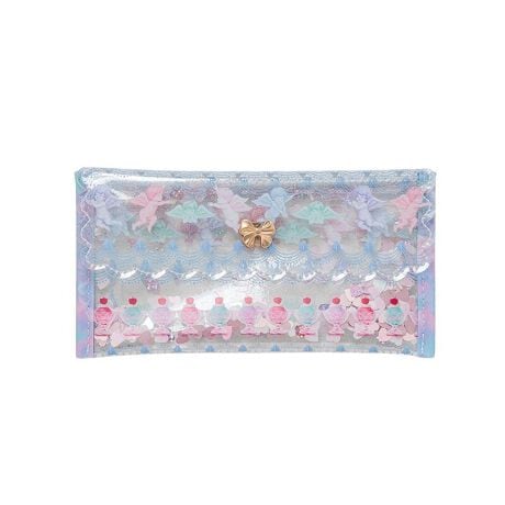 スカラップのフタが特徴のスパンコール入りクリアラメPVCのペンケースが登場!キラキララメに揺れるスパンコールがハートを鷲掴み!ペンケースとしてはもちろん、領収書やチケットの収納ケースとしても★マチ無しのスマートなデザインで使いやすい♪