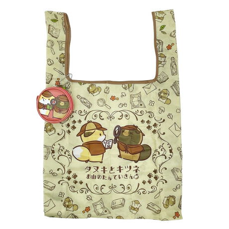 タヌキとキツネ ポーチ付きエコバッグ