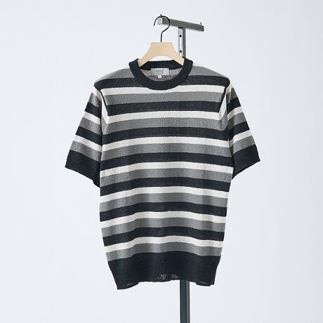 ざっくりとした編地の風合いと着まわしやすい配色のランダムボーダーニットTシャツ。