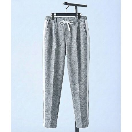 腰まわりから膝まではストレート、膝下から裾にかけてテーパードさせた新型シルエット。サイドは無地生地で切り替え、直線的なラインで腿まわりをすっきり見せる仕様です。裾の縫い目には高伸縮パワーメッシュをインサートし、足入れ時の可動域と着脱性を確保しています。フロントはスラントポケット、バックは玉縁ポケットで構成し、全体をクリーンに仕上げています。