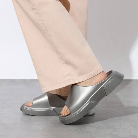 本アイテムは、PAESらしいモダンなムードを感じさせるスライドサンダル。