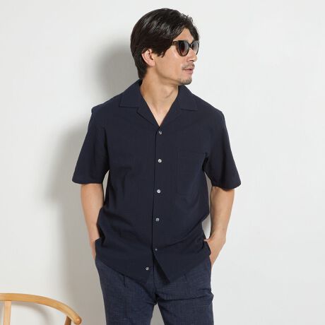 ボタンを留めればきちんと感のあるレギュラーカラーに、外せば程よく抜け感のあるオープンカラーに。