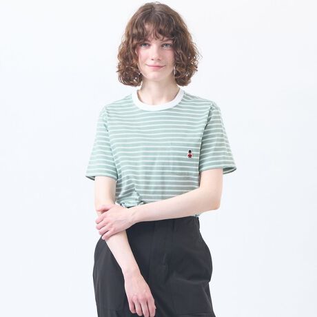 ベーシックな半袖のボーダーカットソー。程よくゆとり感があるシルエットでインナーとしてでも一枚でも着回しのいいアイテムです。