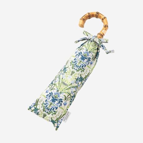 [型番:G5W02736__]様々なフラワーが咲くボタニカルガーデンを繊細に表現した華やかな晴雨兼用折畳傘です。UV遮蔽率は99%以上。裏面には遮光の黒いラミネート生地を貼っており遮光率99.9%以上となります。遮熱効果もあります。雨の日や日差しの強い暑い日に便利にお使いいただけます。ハンドルには持ちやすい曲げのバンブーを採用。軽量にできており、スライドで開閉しやすい3段折りタイプです。共地の巾着袋付。