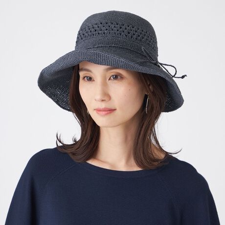 [型番:U1501741__]ペーパーとは思えないほど細かい編地の高級感のあるハットです。部分的に透かし編みをいれたデザインは通気性もあります。U1106-740ペーパーコードトートバッグと同色系ですのでセットでお楽しみ頂けます。