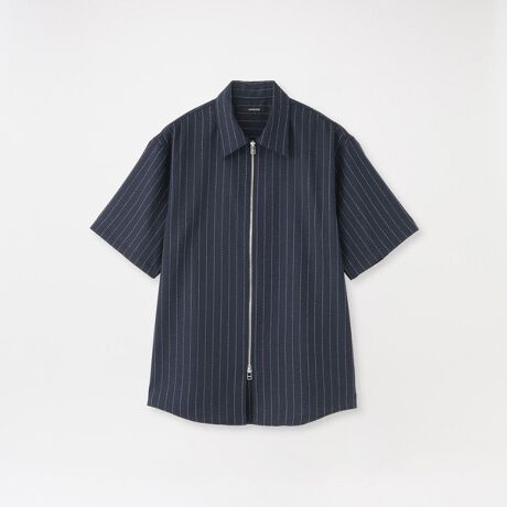 ミニマルありながら印象的なストライプ柄が目を引くジップアップショートスリーブシャツ