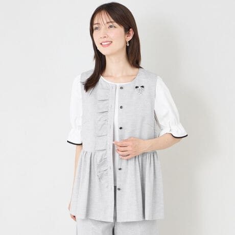麻調のストレッチ素材を使用し、涼しげな風合いと軽やかさを兼ね備えています。見た目は麻のようなナチュラル感がありウォッシャブル仕様で日常使いしやすく、快適に着用できる機能素材です。