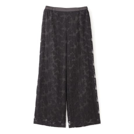 クロスステッチ刺繍の意匠感がラグジュアリーな表情を出すパンツ。ウエスト部分はゴム仕様で気軽に穿ける仕様になっているので、夏のTシャツやカットソーに合わせてコーディネートのキーアイテムになるパンツです。