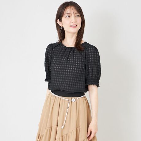 シアーギンガム フロントギャザーブラウス