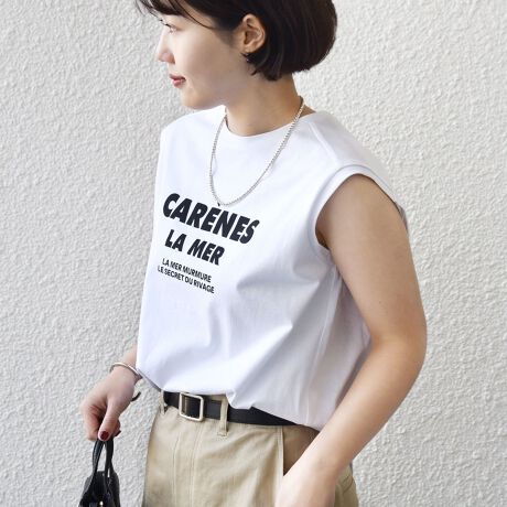 カジュアルに見えがちなロゴTシャツも大人っぽい綺麗めな印象の素材感に仕上げました。