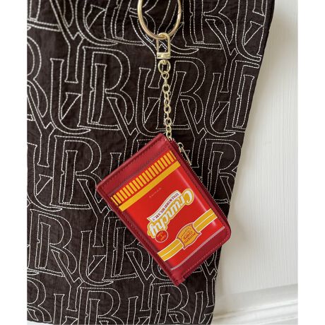 スナックやチョコレートのパッケージをイメージした、遊び心たっぷりのプリントデザインも魅力。