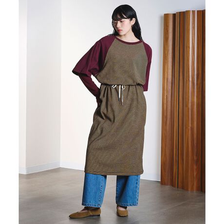 配色ラグランのデザインが効いていて、1枚で雰囲気が出るロングワンピースです。