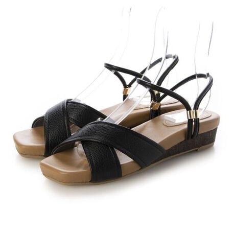 甲をしっかりホールドするクロスベルトと、フィット感を高めるストラップで安定感抜群!高すぎず程よいウエッジソールが足元をすっきり見せつつ、長時間の歩行も快適に。